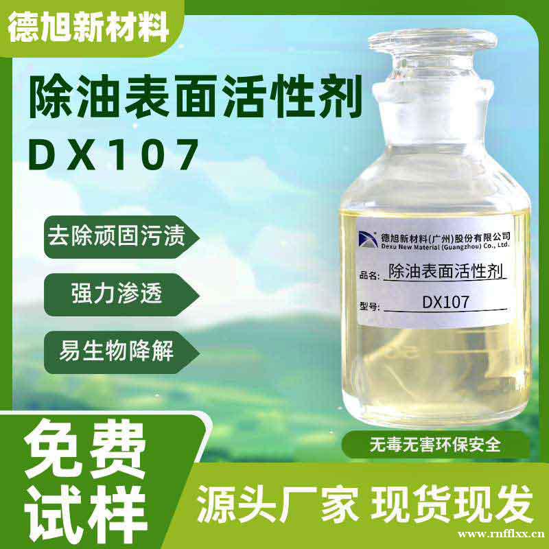 除油表面活性剂DX107是一款新型复合型表面活性剂,具有高效脱脂、强力渗透、无磷环保等特点,可用于切削油、重油污、衣物、布草和高分子胶的清洗体系中。