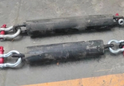 桥梁防落梁缓冲链是一种新型的减震、抗震设计和加固的方法,它的主要功能是减小梁墩的相对位移,阻止梁体从支座上脱落。 桥梁防落梁缓冲链桥梁结构里面用来抗震,防止梁体坠落或脱开的连接措施构造做法:包括设置在相邻梁体之间和/或桥台与梁体之间的连杆装置,在桥梁全长方向上形成至少一联柔性连接体系,连杆装置由连杆、阻尼器构成。