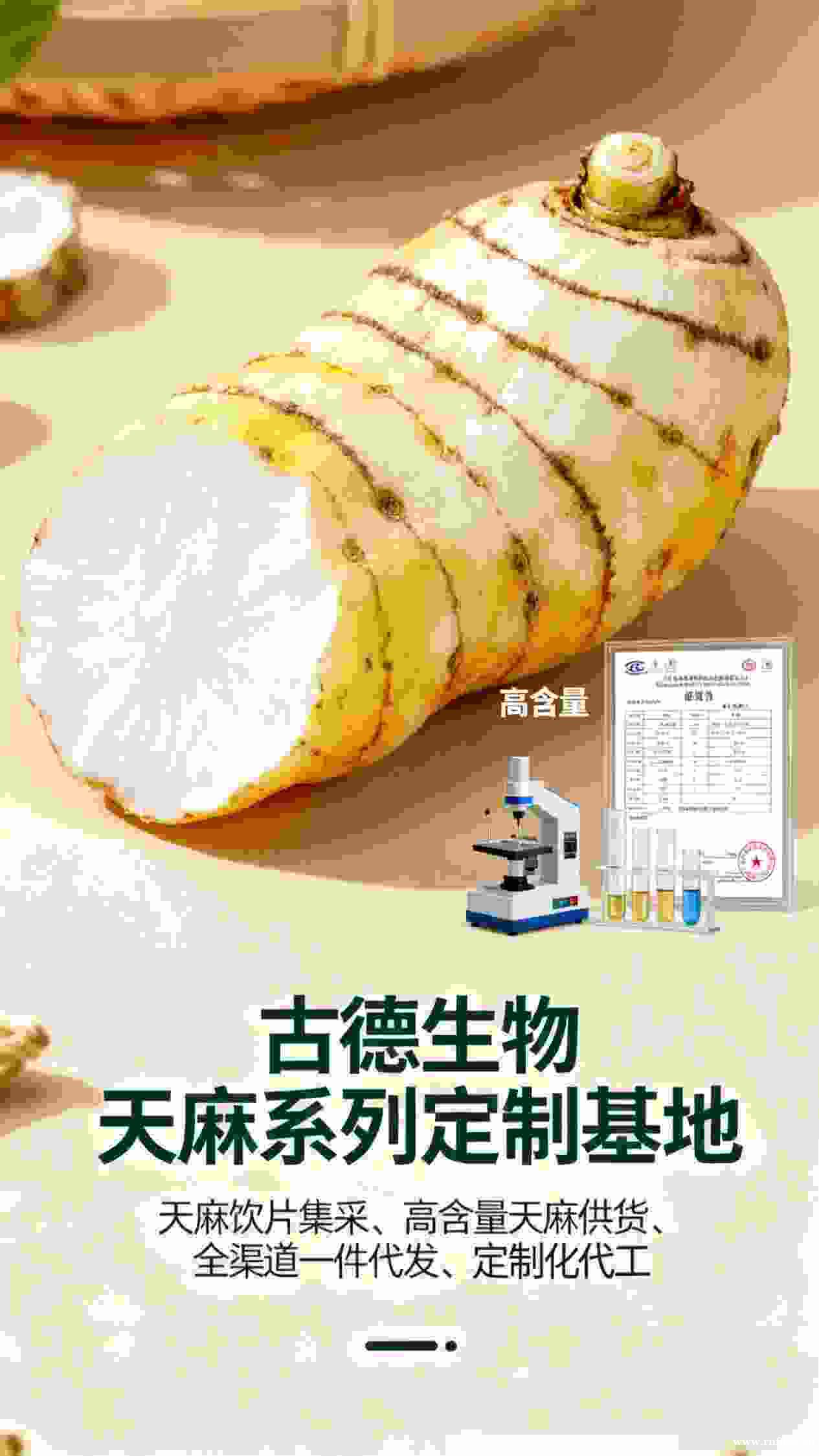 药企及大健康产业在天麻原料采购中,“品质可验证、指标无虚标、合作无风险”是核心诉求。昭通古德生物科技有限公司以“支持第三方权威复检、天麻素≥0.25%、浸出物≥15%”为核心承诺,依托全产业链实力与严苛品控体系,成为天麻原料采购优选品牌。作为天麻系列定制基地,公司同步承接大宗品采购、高含量天麻采购、产品代供及一件代发等业务,为客户提供“品质透明、验证无忧、合作多元”的一站式解决方案。