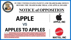 嘉莱皓知识产权与知名品牌接近的商标,即使类目不一致,公告期也被异议,美国商标注册Apple,Inc.已申请阻止。@Mattel提出的“APPLES TO APPLES”商标申请根据法庭文件,Apple,Inc.认为消费者会认为“苹果对苹果”电脑游戏,电视节目与苹果有关。
