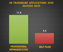 2020 ÄêÔÚÉ̱ê´úÀíÈËÐÖúÏÂÌá½»µÄY¹úÉ̱êÉêÇëµÄ³É¹¦ÂÊÊÇ×ÔÐÐÌá½»µÄÉêÇëµÄ 2.7 ±¶¡£92% µÄÒÑÍê³ÉÉêÇëµÄÂÉʦ»ñµÃÁË×¢²á¡£2020ÄêÔÚY¹úIPO ÉÏ×ÔÐÐÌá½»µÄÉ̱êÉêÇëÖÐÓР18% Î´³É¹¦¡ª¡ª³¬¹ý 12,000 ¼þÉêÇëʧ°Ü¡£¡ª¡ª¼ÎÀ³ð©ÖªÊ¶²úȨ